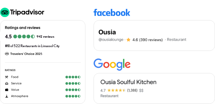 Health is in the centre of Ousia! We have carefully studied & crafted our menu in order to lists any allergens in our dishes. So you can have a peace of mind & enjoy!